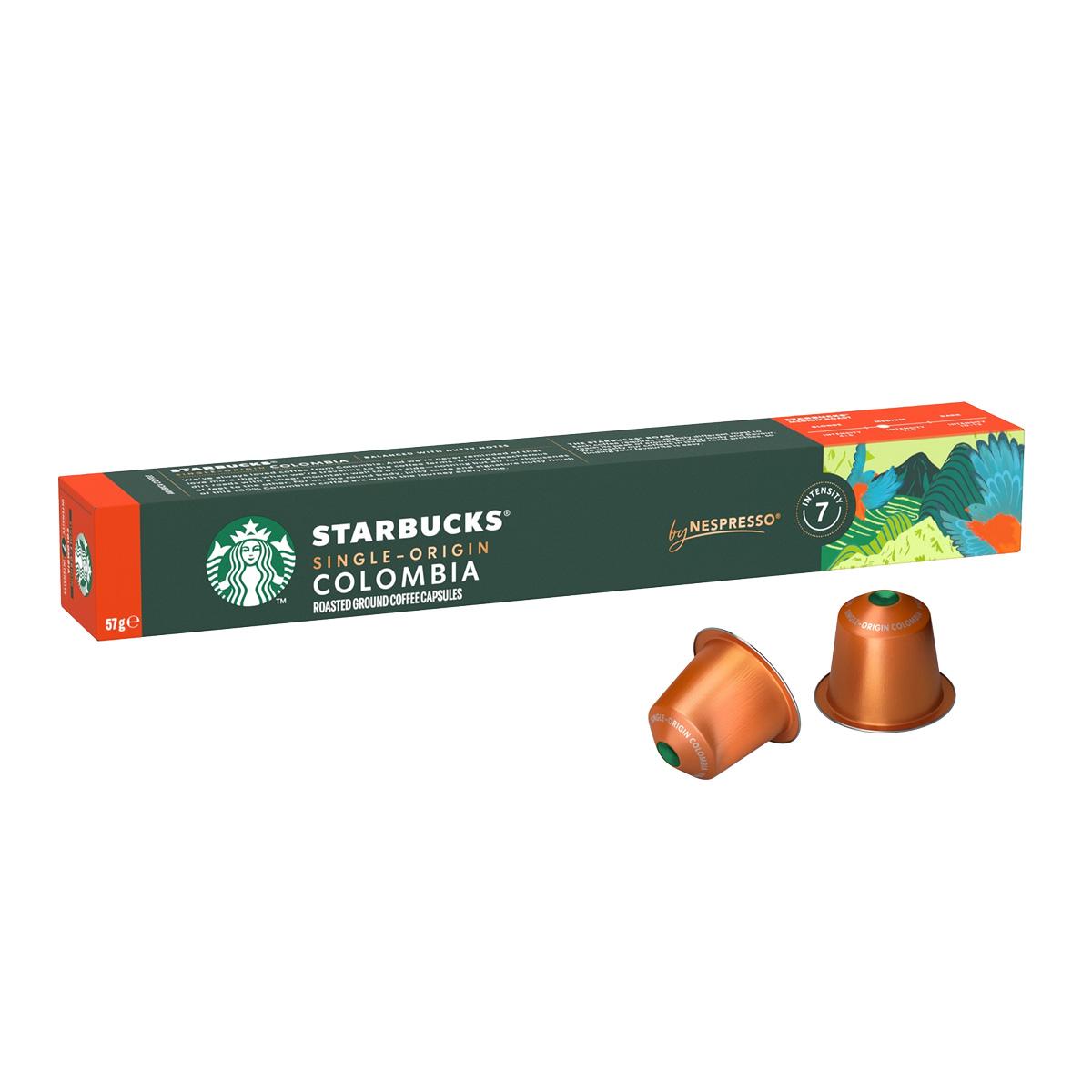 10 STARBUCKS® Single Origin Colombia kapsula Nespresso® za espresso kavu. Paket od 10 STARBUCKS® Single Origin Colombia kapsula Nespresso®. Pijuckajte i uživajte u ovoj 100% kolumbijskoj kavi okruglog tijela, sočnog okusa i prepoznatljivog orašastog završetka.